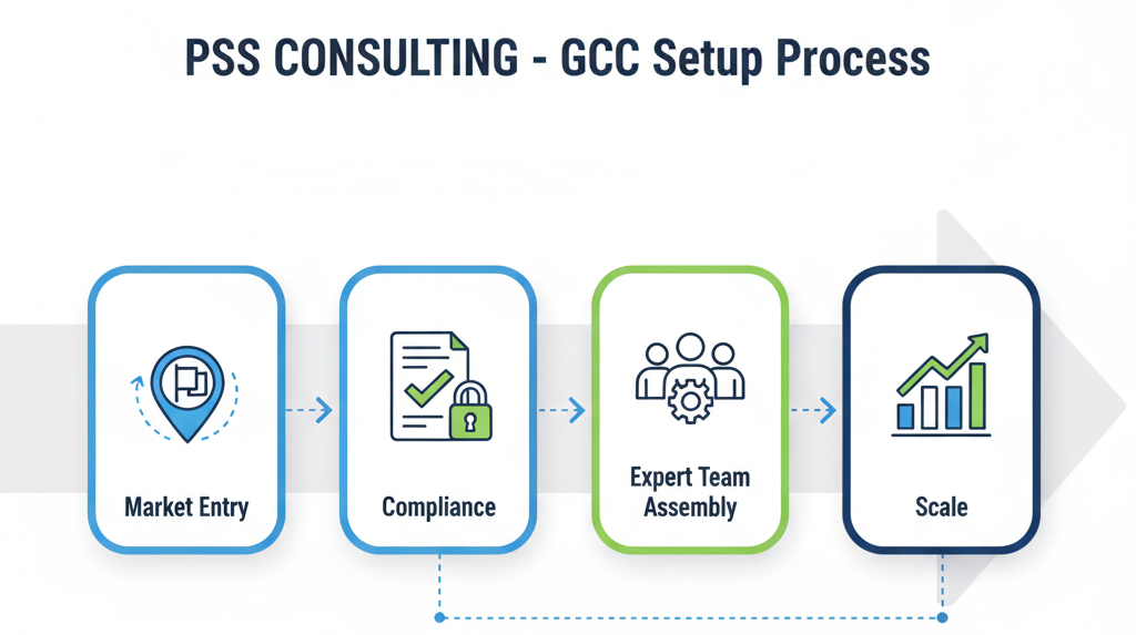 💡 How PSS Consulting helps: We guide enterprises through India and MENA GCC setup, from market entry and compliance to assembling expert teams in Tier-2/3 cities, where costs are 25–30% lower.